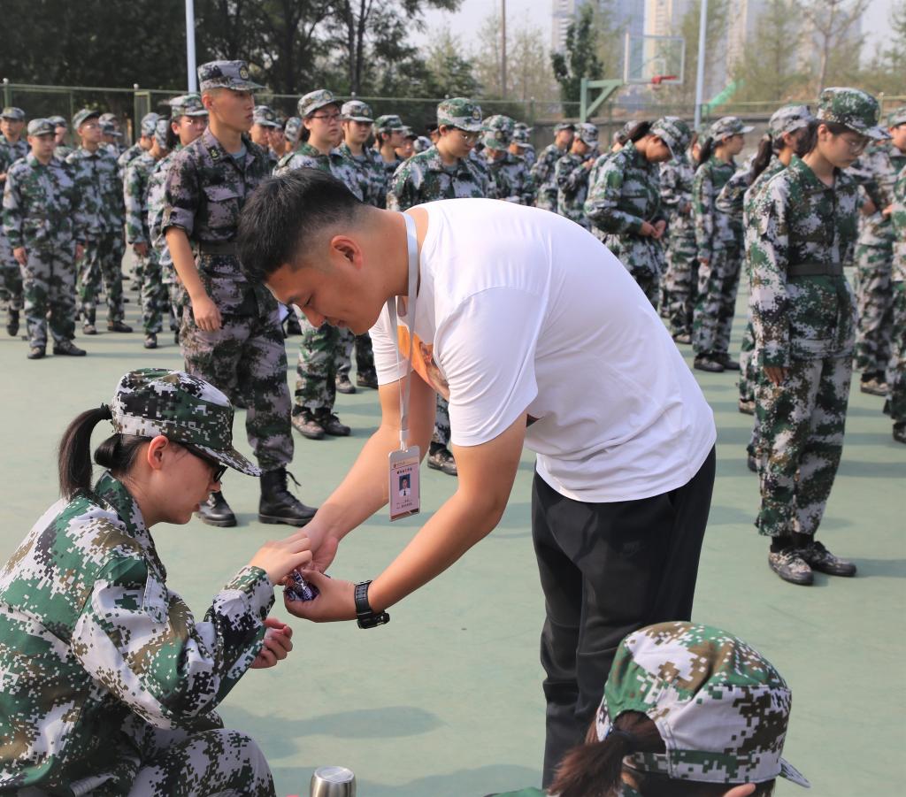 两位辅导员老师鼓励同学们“志不求易者成,事不避难者进”,磨炼意志,苦练本领,为以后的学习生活增添一份保障,并鼓励同学们不负军训好时光。同时,辅导员积极与教官们进行沟通交流,及时了解新生军训进程、训练成果以及新生的整体训练状态。在训练间隙,辅导员积极与新生交流,准确及时地了解新生军训的心理状态,并对训练中身体不适的新生给予充分的关心与帮助。如走访宿舍,陪同就医,心理疏导等。
