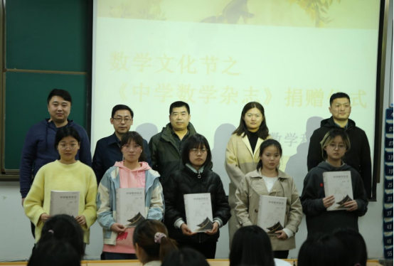 赠书。《中学数学杂志》编辑部办公室主任史可富,学院党委副书记曲凤东,辅导员徐腾飞、荣斌、韦宁、高思明出席仪式,19、20级部分学生参加本次仪式。仪式由20级辅导员韦宁主持。