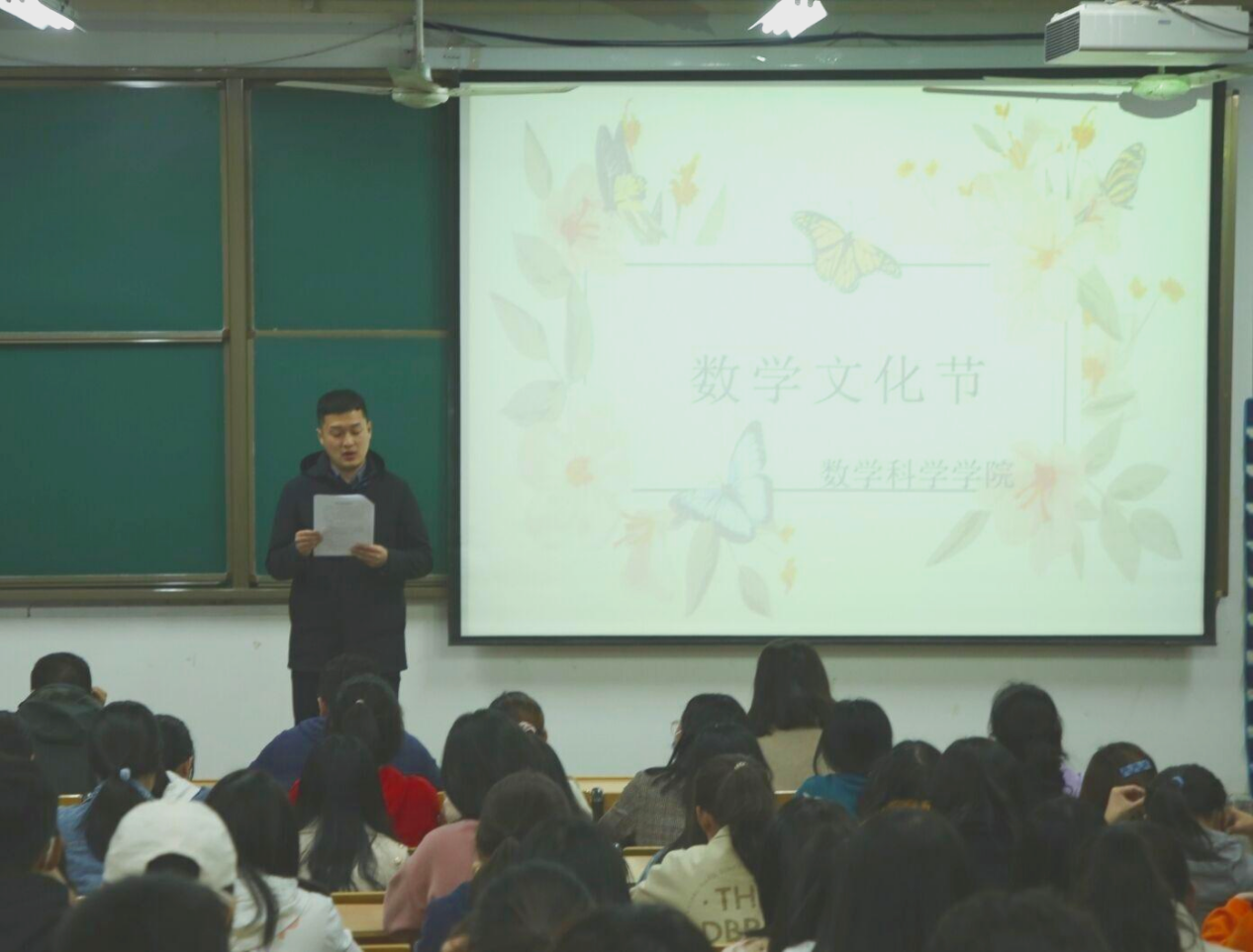 辅导员荣斌宣读数学文化节策划书。文化节期间,学院以“曲园数学记忆”文化长廊及数学文化表白墙为载体,展现学院的文化风貌与历史变迁,回顾学院数学开拓发展过程中的标志性事件,学院学子将追寻先哲的足迹,了解更多数学的历史,描绘科学之本的韵律,感悟数学的绚丽。