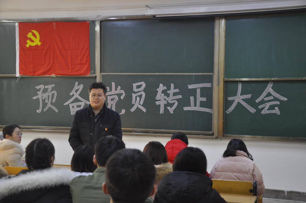 首先,五名预备党员依次宣读转正申请书,介绍其学习情况、在校表现、今后努力方向等,随后进行不记名投票。最终,五名预备党员均获全票支持,顺利转正。最后,刘建新发表讲话,他对五名同志的加入表示热烈的祝贺和欢迎,寄言党员同学要始终保持良好的风貌,发扬模范先锋作用,继续努力学习党的知识,始终与党组织保持一致。