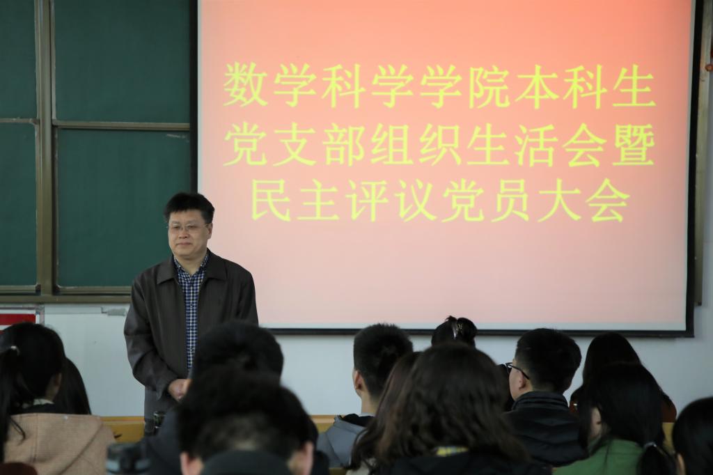 本科生党支部组织生活会暨民主评议党员大会在数学楼101教室成功举行。学院党委副书记刘建新,团委书记朱伟卫,辅导员郅艳梅、张惠,全体本科生党员代表参加了本次会议。