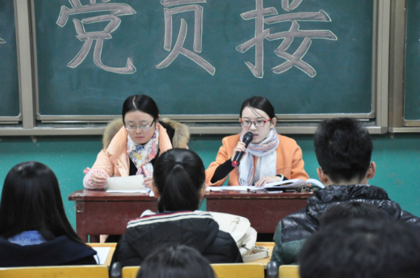 大会第二项进行了13名预备党员接收工作,第二批发展对象刘贝等13人分别宣读了入党志愿书并介绍自己的主要生活经历,入党介绍人介绍相关情况后由支部委员会报告了综合政审情况,同时进行了无记名投票表决。根据表决结果以及党支部的充分讨论,决定准予刘贝等13名同志加入中国共产党。随后13位预备党员在党旗下进行了庄严的宣誓。大会严格按照党员发展程序,全场秩序井然。