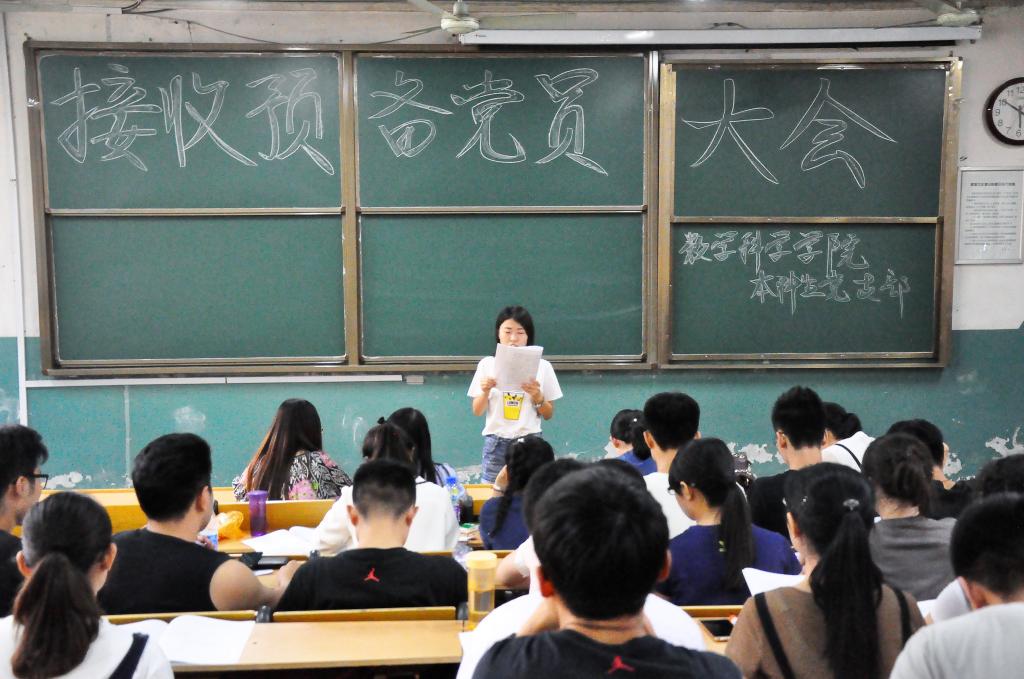 6月28日下午,接收预备党员大会在数学教学楼101教室成功召开。本科生党支部书记朱伟卫、副书记杜晨曦、组织委员郅艳梅、辅导员张惠及本科生正式党员、预备党员出席了本次大会。会议由朱伟卫主持。