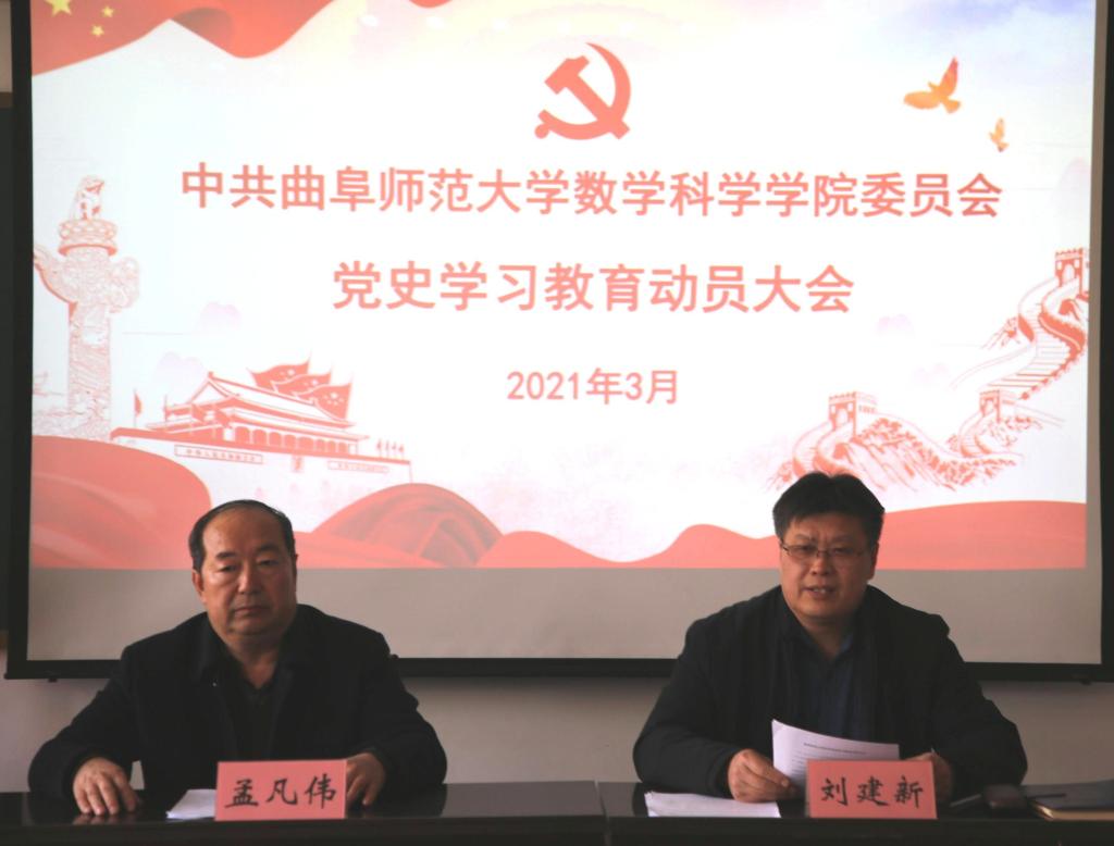 刘建新首先传达了习近平总书记在党史学习教育动员大会上的讲话精神,传达了学校党史学习教育动员大会精神。刘建新在讲话中指出,全体同志要深刻领会习近平总书记讲话精神,不断提高政治站位,提高政治判断力、政治领悟力、政治执行力,把开展党史学习教育作为贯穿全年的一项重大政治任务,深刻理解党史学习的重大意义,清晰把握学习的目标要求,准确把握党史学习的重点任务,精准掌握学习的时间安排,把学习目标任务落实落细。