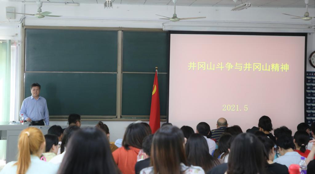 党委书记刘建新发挥领导干部“关键少数”的示范引领作用,在数学楼201为全体党员上了一堂以“井冈山斗争与井冈山精神”的党课。