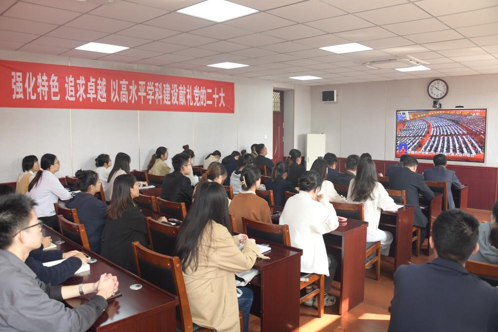 党的二十大报告内涵丰富,思想深刻,旗帜鲜明,学院师生学习热情高涨,在观看开幕会的过程中,所有师生都聚精会神,认真听取习近平总书记做的工作报告。在观看开幕会的过程中,在场师生不时拿出笔做记录,听到精彩处不约而同鼓起掌来。