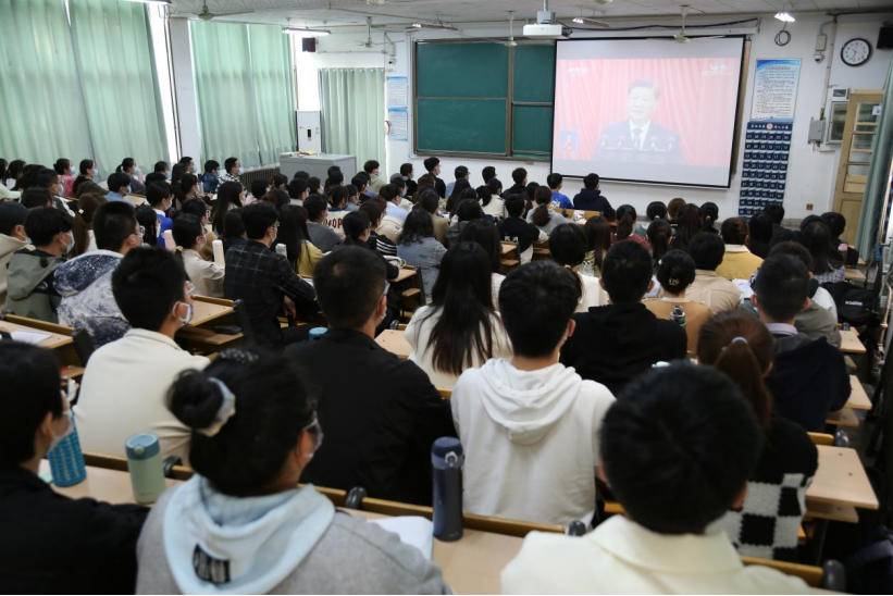 党委委员、教职工代表、在校本科生、研究生共1800余人集体收看了开幕会现场直播盛况,认真聆听了习近平总书记代表十九届中央委员会向大会所作的报告。大家精神振奋,热情高涨,师生们在学院各会议室、各班级教室、军训训练场共同收听、收看大会直播。