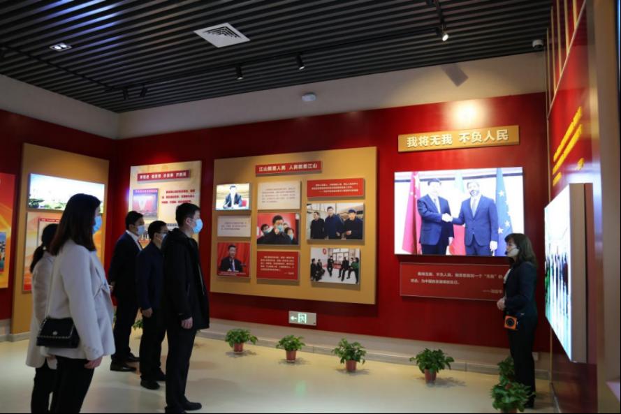 在讲解员引导下, 全体党员干部认真聆听了政治铸魂、警示立威、立德修身、乘风破浪四个篇章的介绍。展厅通过文字图片、视频影音、模拟场景等形式,展现了我党各个历史时期反腐倡廉的重要举措、工作成果以及查处的贪污腐败大案要案,触目惊心的案例、发人深省的忏悔图片,警醒党员干部要洁身自好、廉洁奉公。