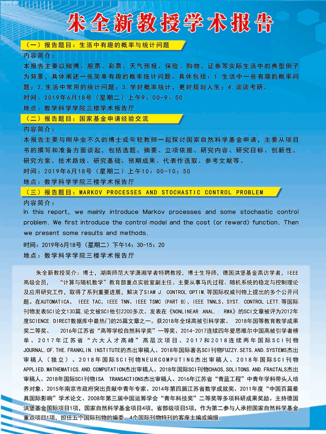 朱全新教授学术报告信息预告