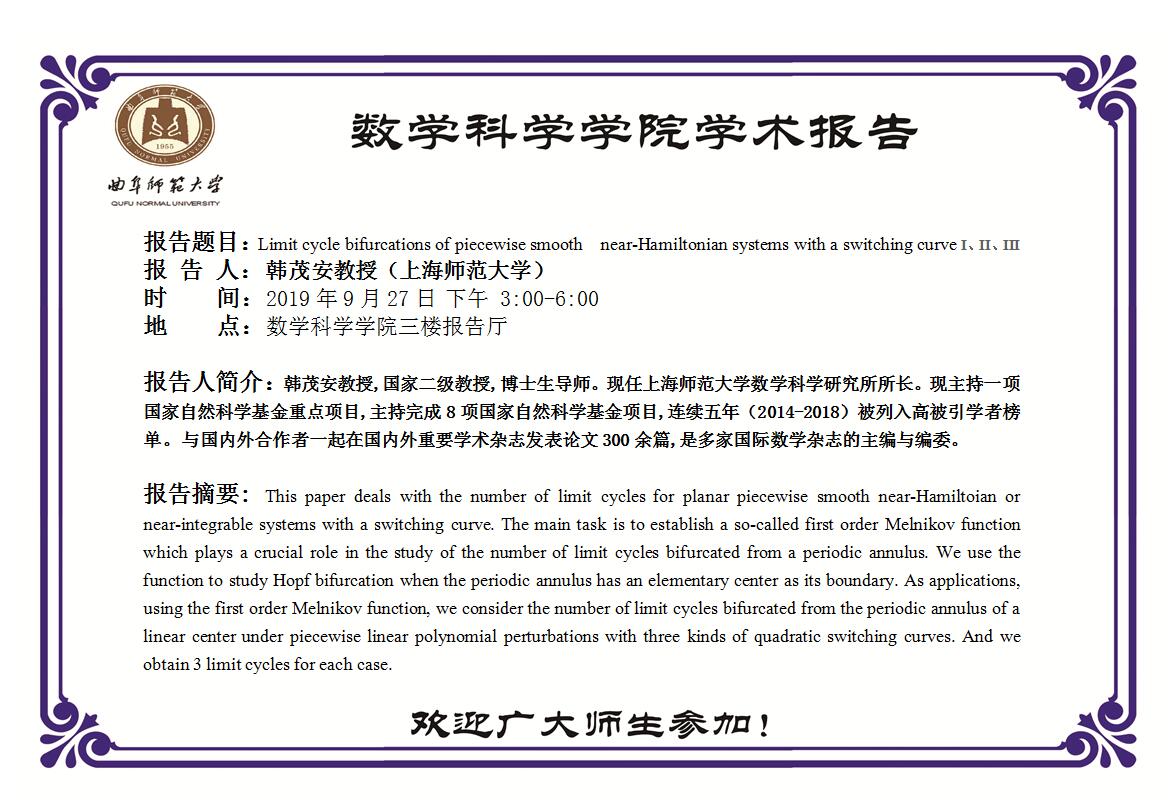 韩茂安教授学术报告
