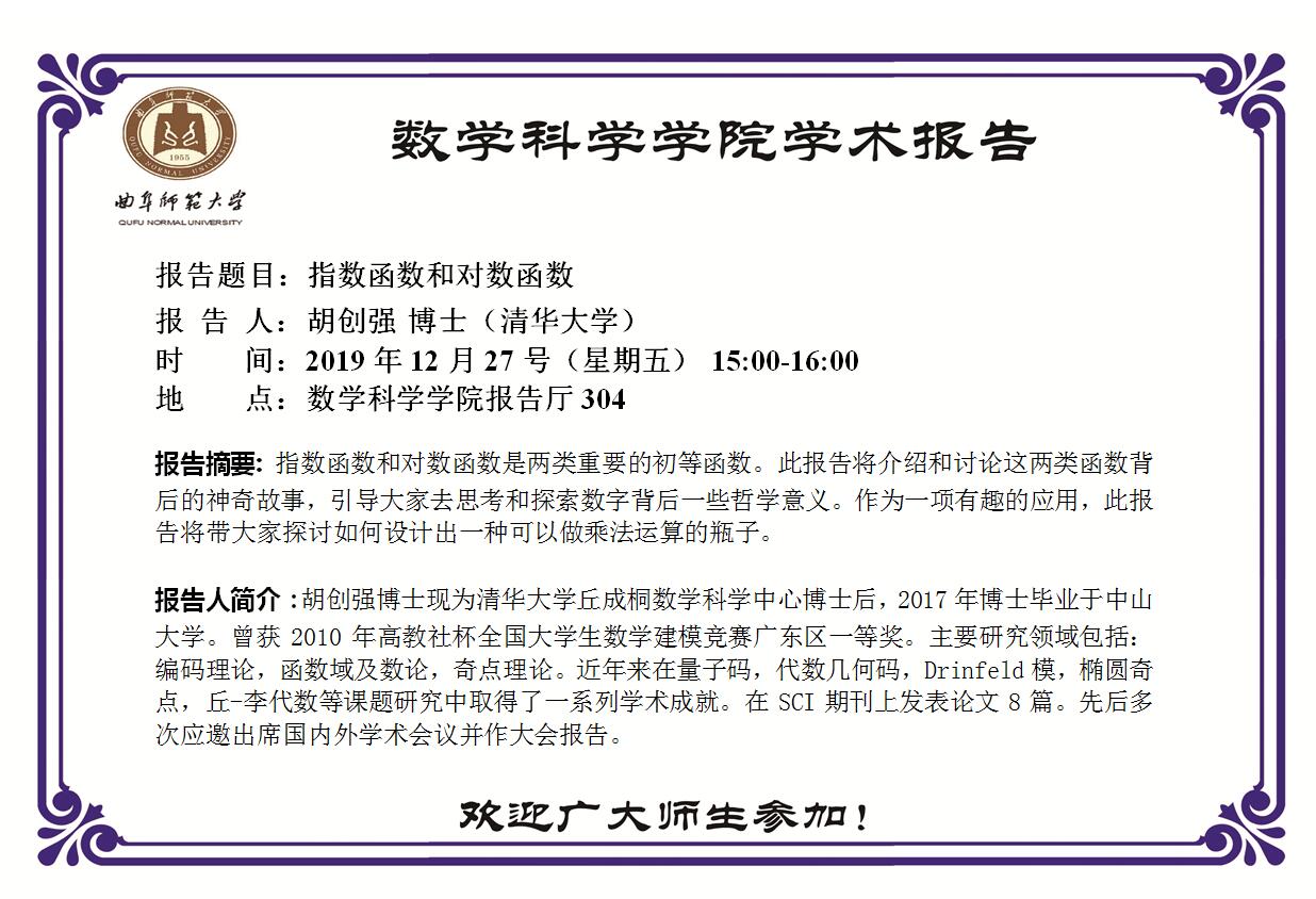 胡创强博士学术报告