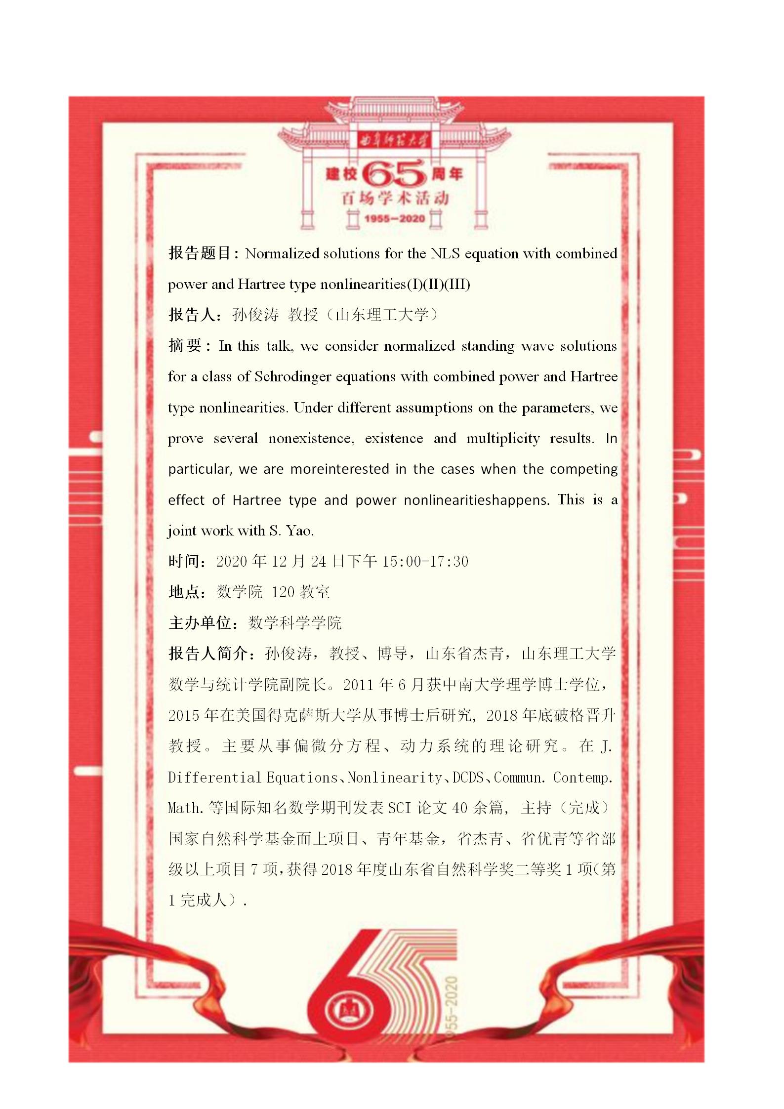 【12月24日】孙俊涛教授学术报告