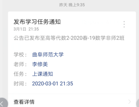(2)课前:根据这学期的教学计划,结合课程的教学内容,课前进行充分的教学设计,包括教学内容重组、教学方法实施、教学工具调试等。在雨课堂及QQ群及时发布学习任务及上课提醒,如图4,图5所示。